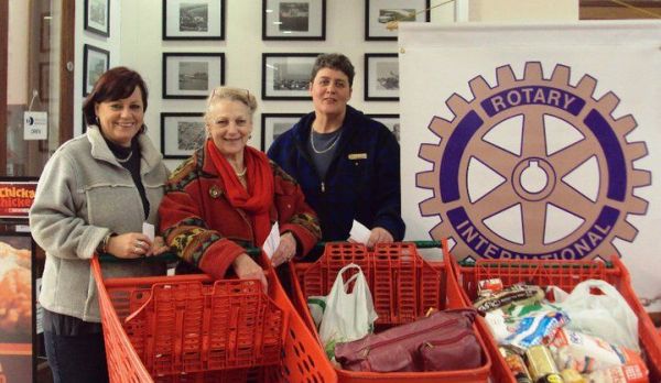 Thanks to volunteer Rotarians and the generous St Francis community, five full trolley loads of foodstuffs were collected from outside Village SuperSpar yesterday. The groceries will be distributed to soup kitchens in Sea Vista.