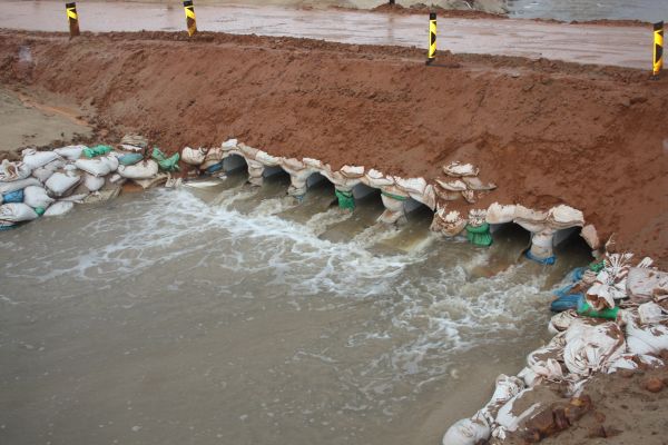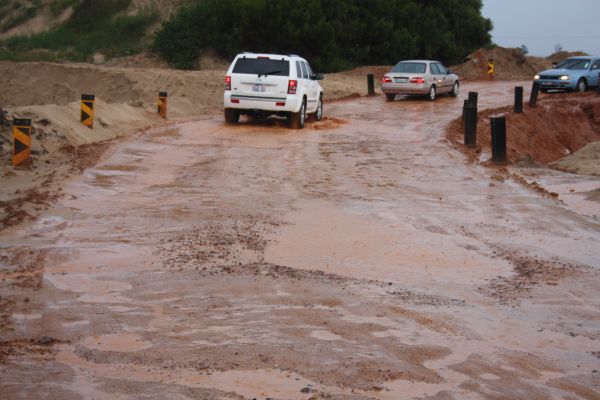 A site inspection at the Sand River bridge at 8 am by officials today revealed that despite fairly heavy rains occurring intermittently throughout the night and muddy-looking conditions this morning, the second temporary bridge over the Sand River in St Francis Bay is holding well.