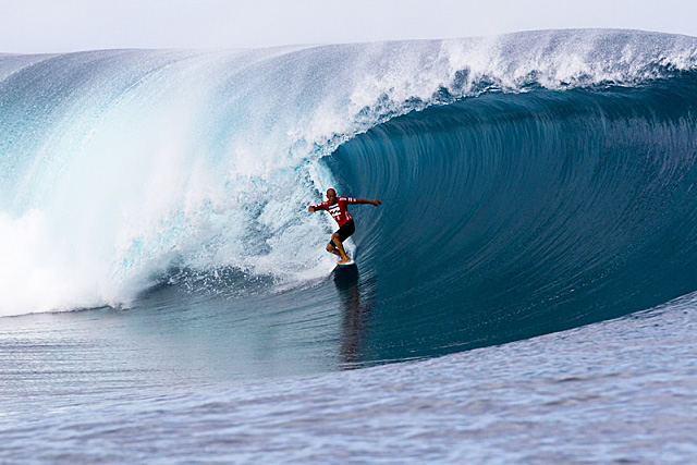 Coming into Tahiti rated No. 6 on the ASP World Title rankings, Slater’s win today rockets the Floridian to the No 1 spot after a number of top seeds suffered early eliminations at the hands of an unmerciful Teahupo’o.
