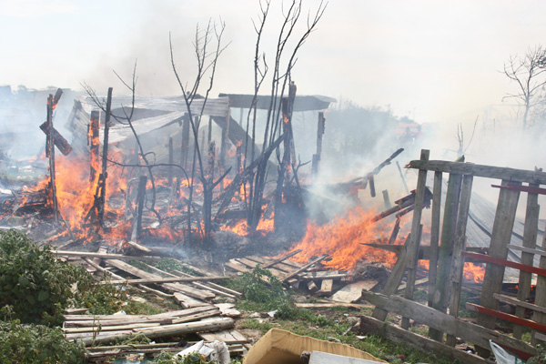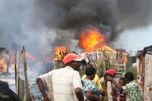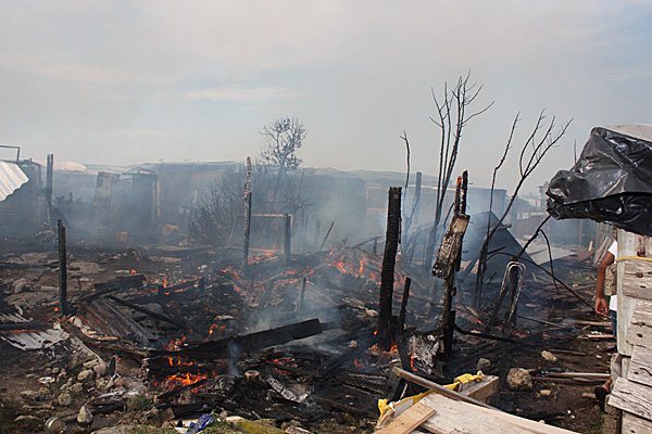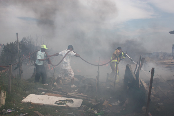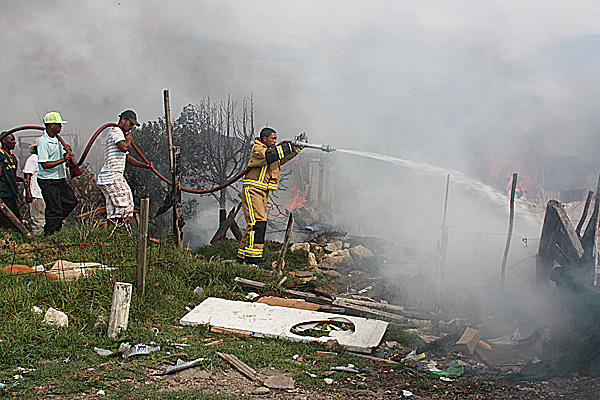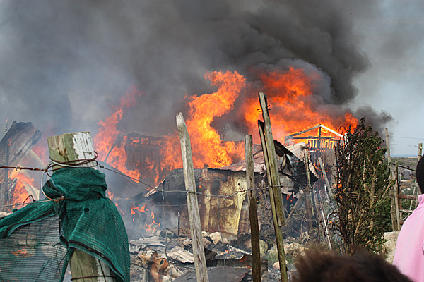 The fire started around 3 pm and by 3.30 pm was already a raging frenzy, threatening to set the whole of the squatter camp alight before the fire crew arrived.