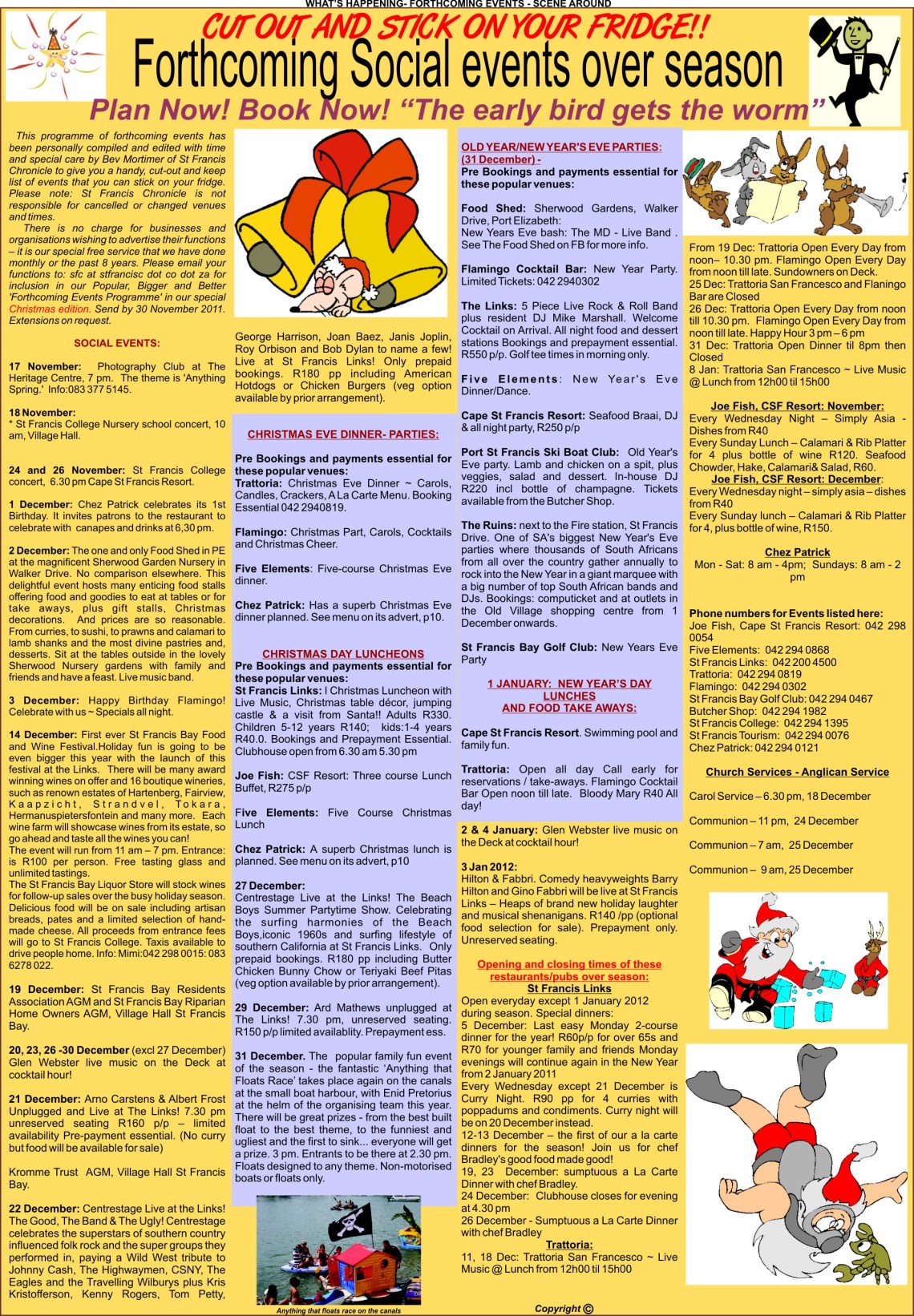 Here is a an exciting line up of fun events planned so far for St Francis Bay and Cape St Francis over the festive season.