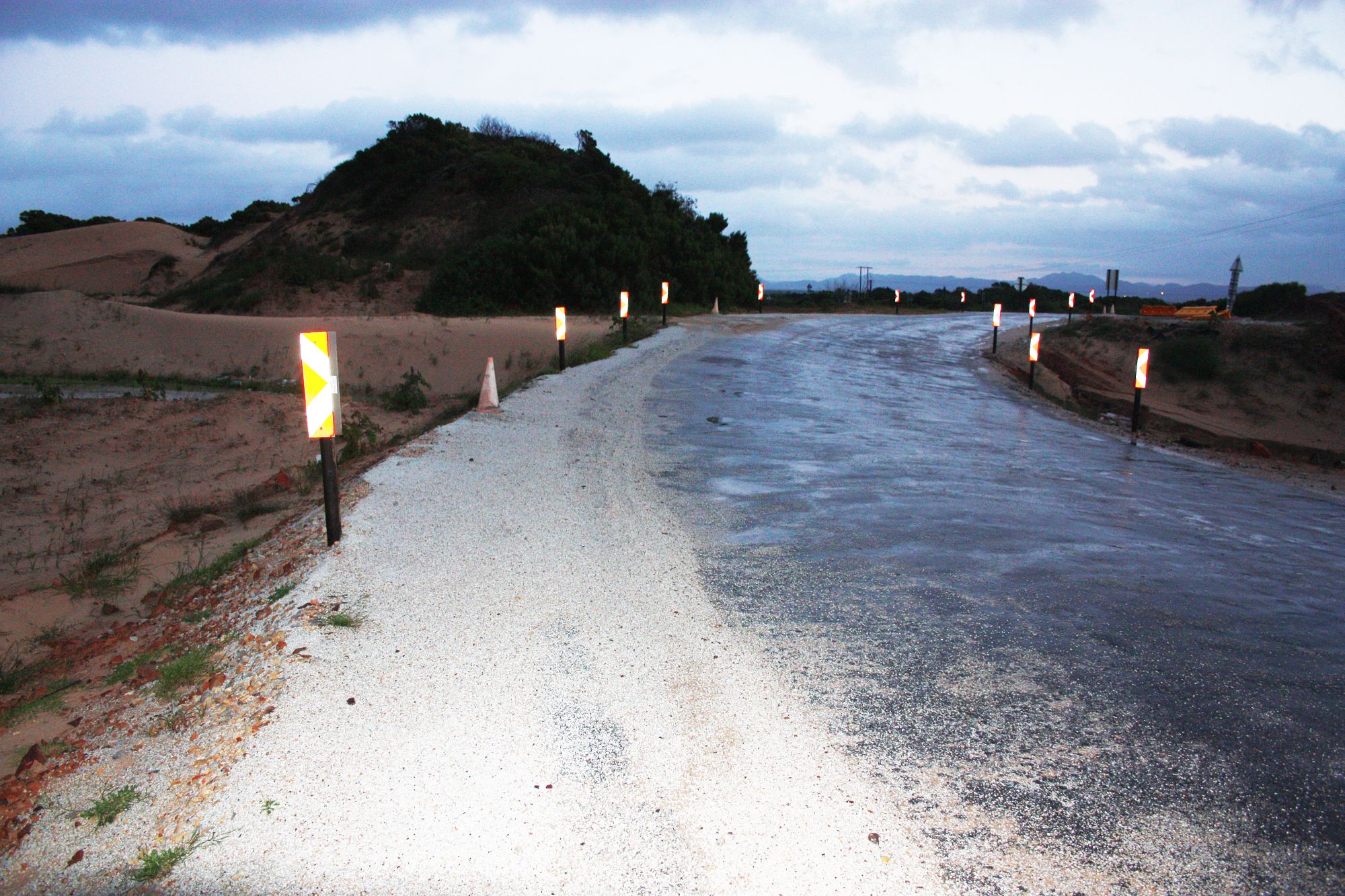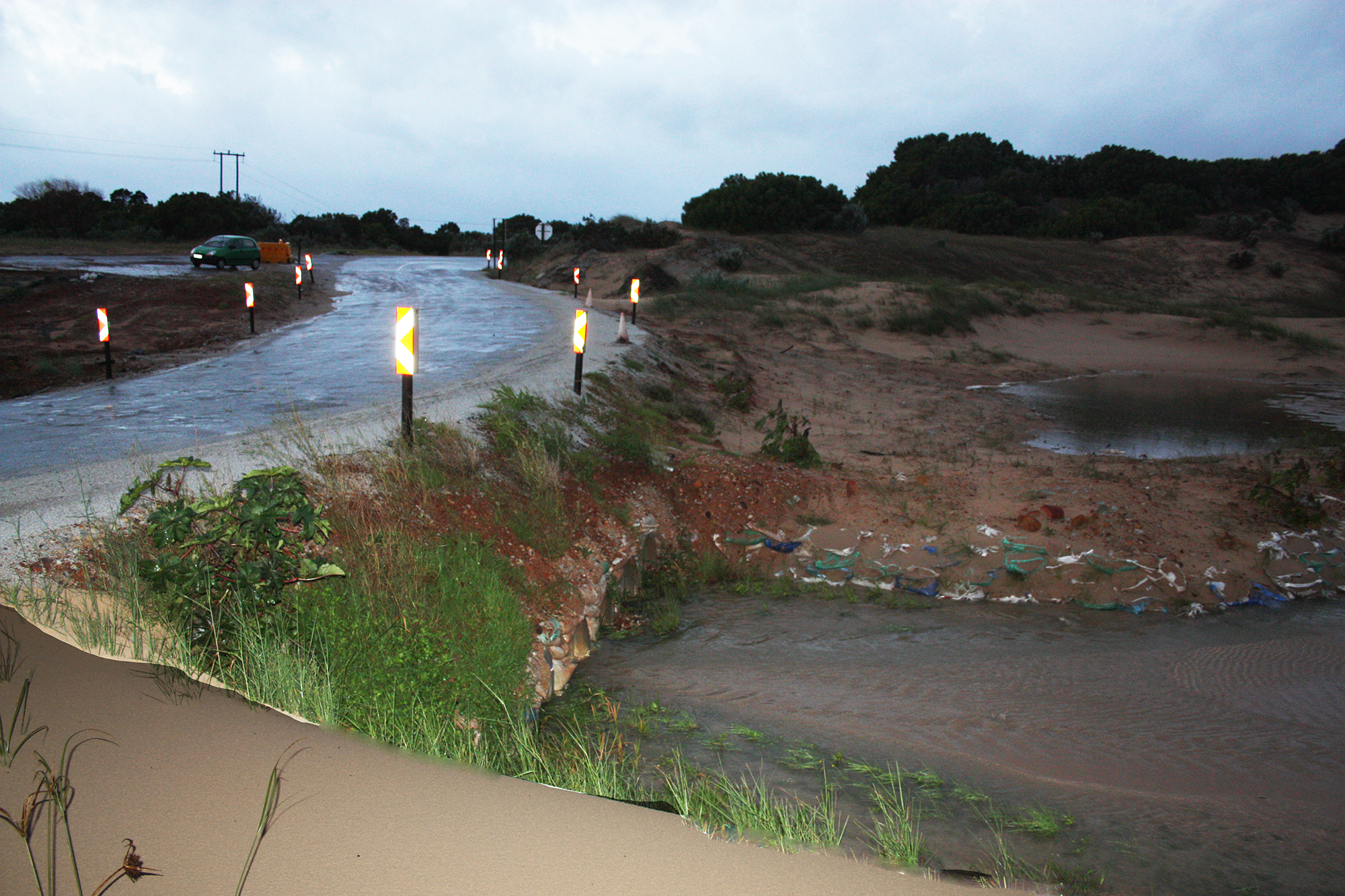 The bridge across the Sand River on the R330 to Humansdorp  – St Francis’ only exit route – was broken and washed away mid afternoon on 7 July 2011 by the sheer force of flood waters that came initially from the Oyster Bay wetlands following heavy rains . The old bridge could not stand the pressure and gave way, leaving St Francis Bay and Cape St Francis marooned for 24 hours.