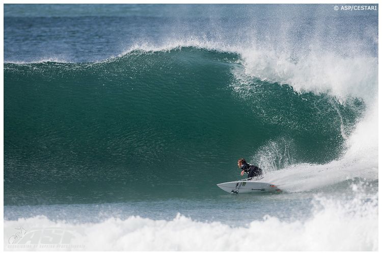 Today saw 10 straight hours of serious competition with some incredible surfing performance and some mishaps. Sean Holmes (ZAF) was the first guy to feel the power of the swell, breaking a board in his first heat of the day, getting a new board and breaking the fin off that one in a deep and critical barrel. “That was such a good wave, and I was confident that I was going to get a good barrel,” said Holmes of that wave.