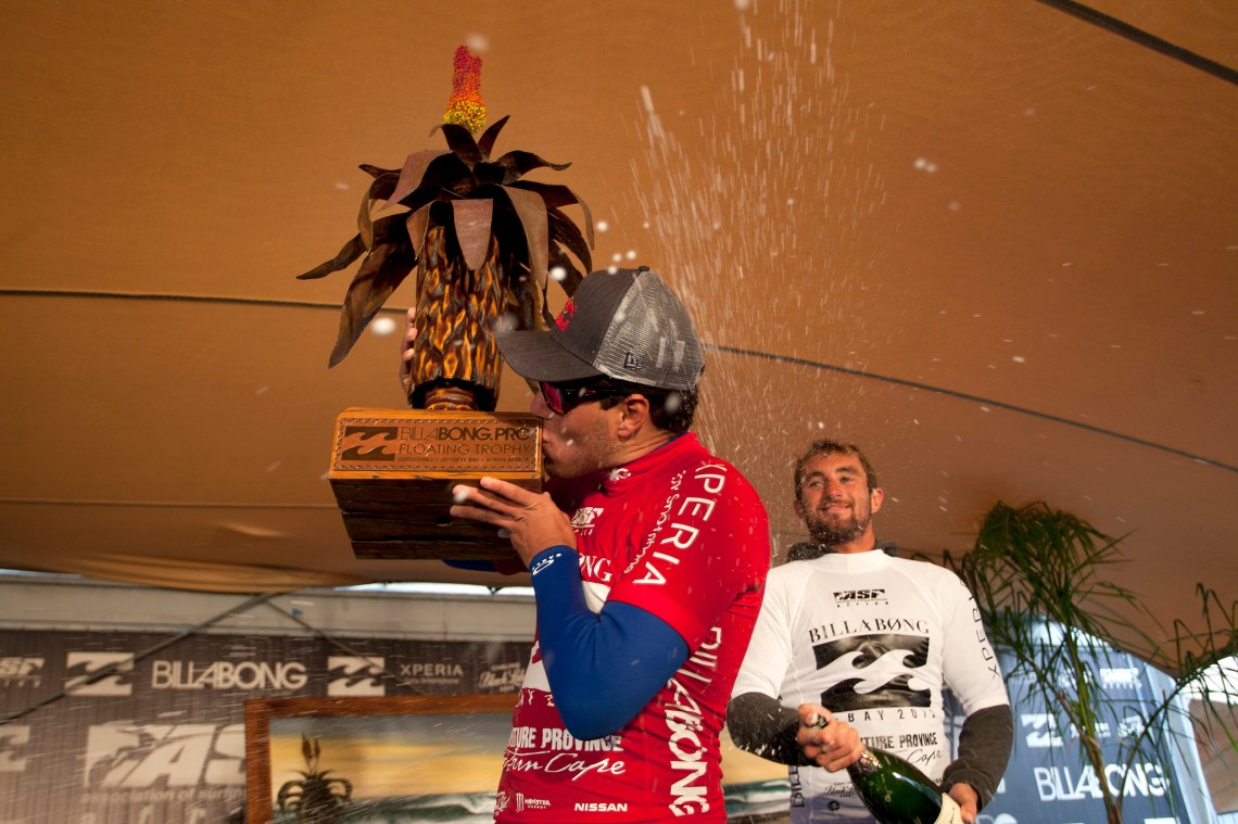 Fighting for the high scores deSouza rode a wave right over the rocks snapping one of his fins out, riding his backup board deSouza proceeded to set a final heat score of 16.00 to that of 13.60 set by Duru to claim the title of 2012 Billabong Pro JBay Champion. deSouza pockets US$25000 for his work and heads back to Brasil having lived out his dream of winning in Jeffreys Bay.