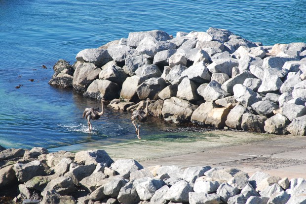 Yzerfontein has a number of these feathered residents and local humorists say these two plucky birds were presumably practising for the Olympics! It is reported that this is not the first time these feathered athletes have been seen in the Atlantic.