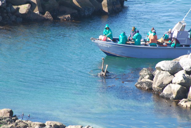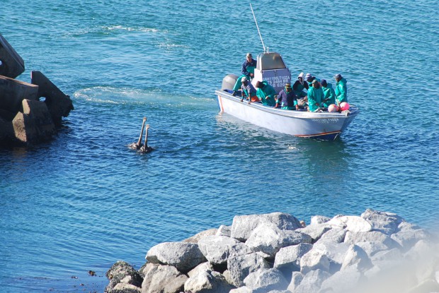 Skipper and boat owner, Johan Basson, came upon these two feathery swimmers in the afternoon and herded them out of the sea and into the harbour. They eventually ended their swim at the slipway.