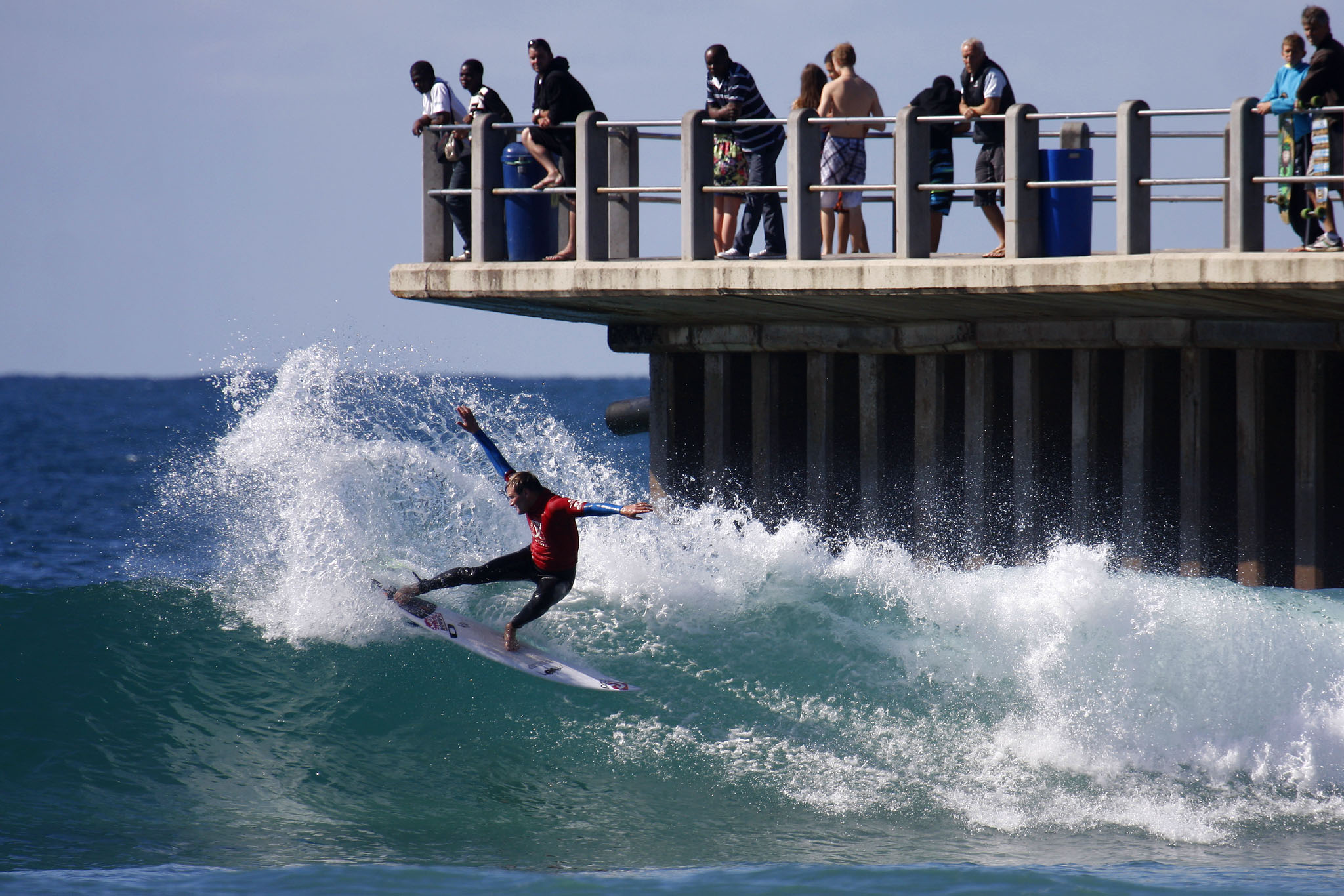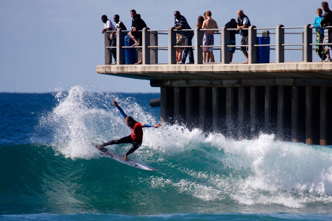 Former ASP World Tour campaigner Greg Emslie (East London, Border) won the Masters division of the SA Masters Championships at Durban’s New Pier today. Emslie powered to victory in the final minutes of the final, beating Gary Van Wierengen (SKZN), Justin Maisch (SKZN) and Mike Frew (KZN) respectively to clinch the title.