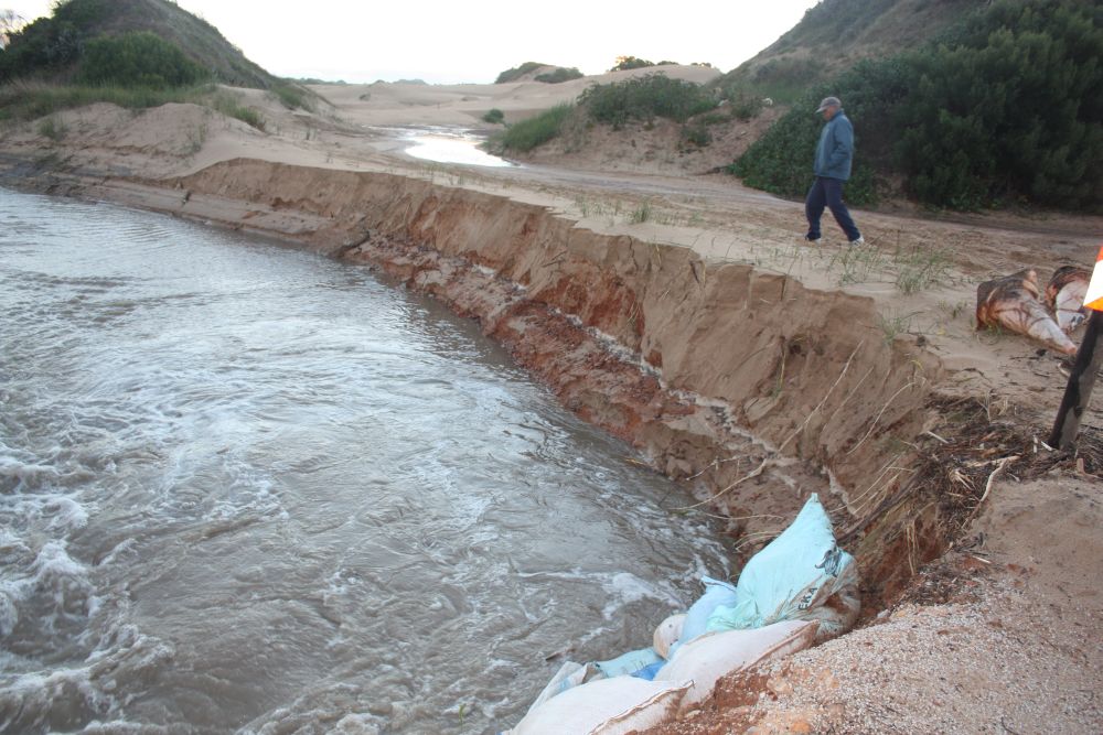 The river is forming a whirlpool and a lot of grunge is being collected again. In addition the bank on the Humansdorp side of the bridge if facing the Links is breaking up and chunks of sand are falling into the river.