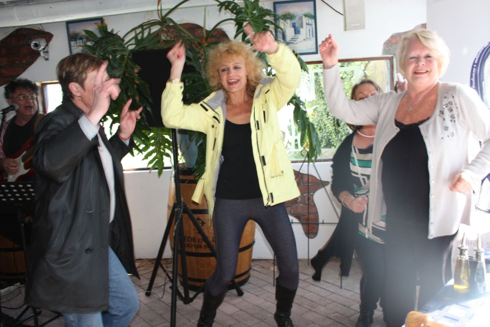 The place was packed when all the smartly dressed ladies   – most who had left hubbies or partners at home – finally seated themselves.  Drinks were ordered and the taverna resonated with the sounds of women chatting up a storm until the muso started playing. Then ladies started dancing  to the great rhythms.