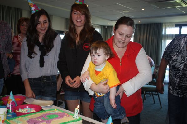 Friends and family of James Robert Menhennet, son of Johnathon and Kate Menhennet (daughter of Bob Meikle), gathered at St Francis Links yesterday afternoon to celebrate his very first birthday. There was a giant cake with one candle on it, lots of yummy and sticky goodies for the kiddies but upmarket snacks for the parents.