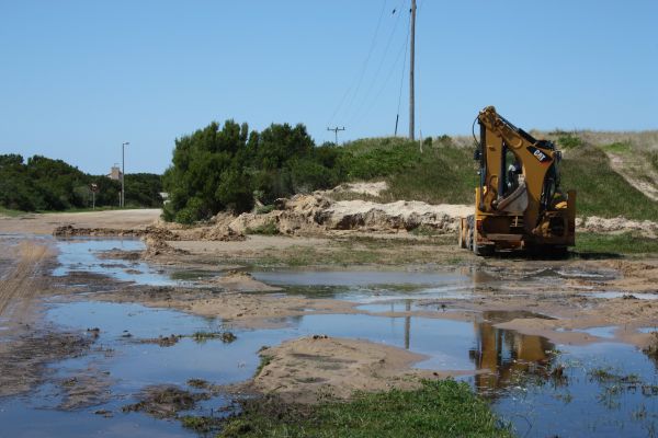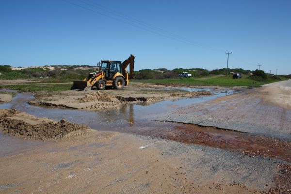 Below are two photos taken by St Francis Chronicle which show work being done by the municipality today (a Sunday) to do some damage control and restore the roads somewhat.