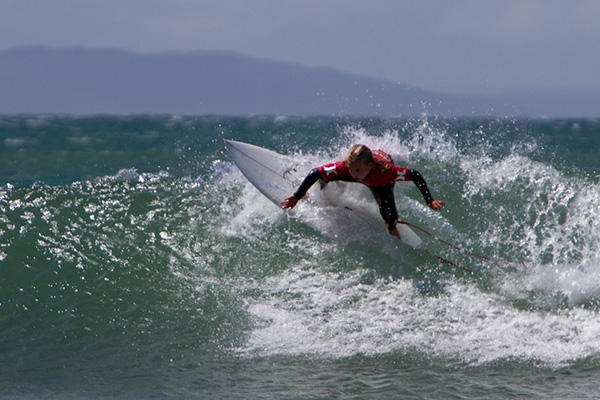 Reigning SA U13 girls champion Kai Woolf (EP) is stills the one to beat i. Kai posted a comprehensive win in her Round 1 match-up. The diminutive blonde caught the best waves and punctuated her rides with solid turns to progress directly to Round 3 in the youngest division.