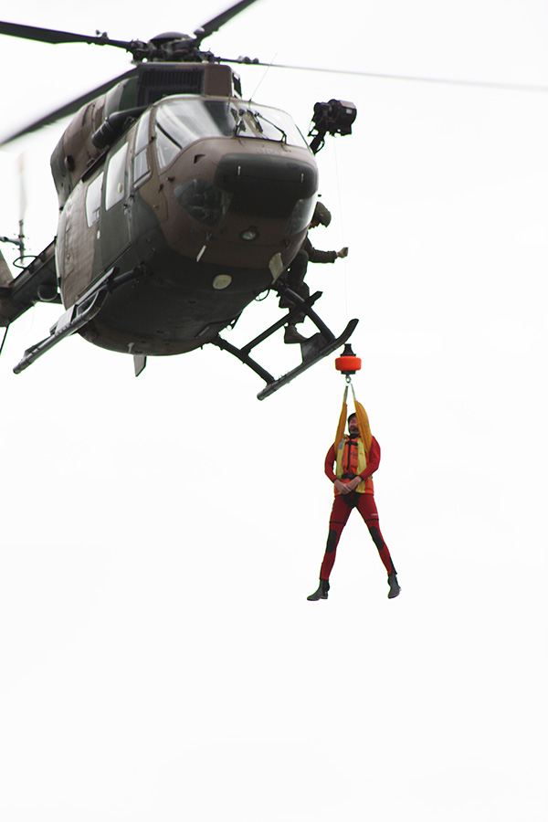 NSRI volunteers first gathered on the wall where they were briefed and given training on what to expect. After a mock fire, the newer recruits then took it in turns to be hoisted up to a helicopter hovering overhead. They were then lowered down again onto the wall.