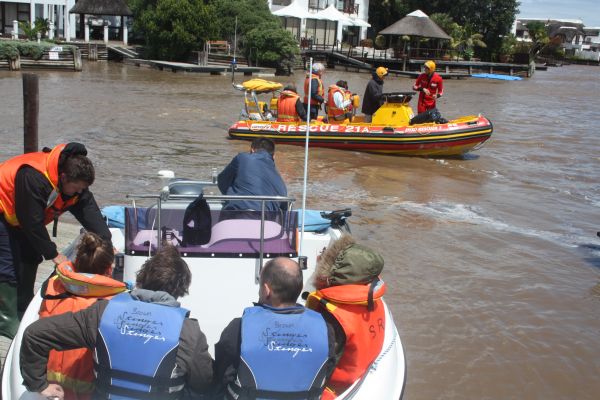 NSRI St Francis Bay volunteer duty crew today are ferrying people to and from the Cove on St Francis Bay’s canals to under the Kromme Bridge. From there passengers can walk up the bank to the R330 road over that bridge.