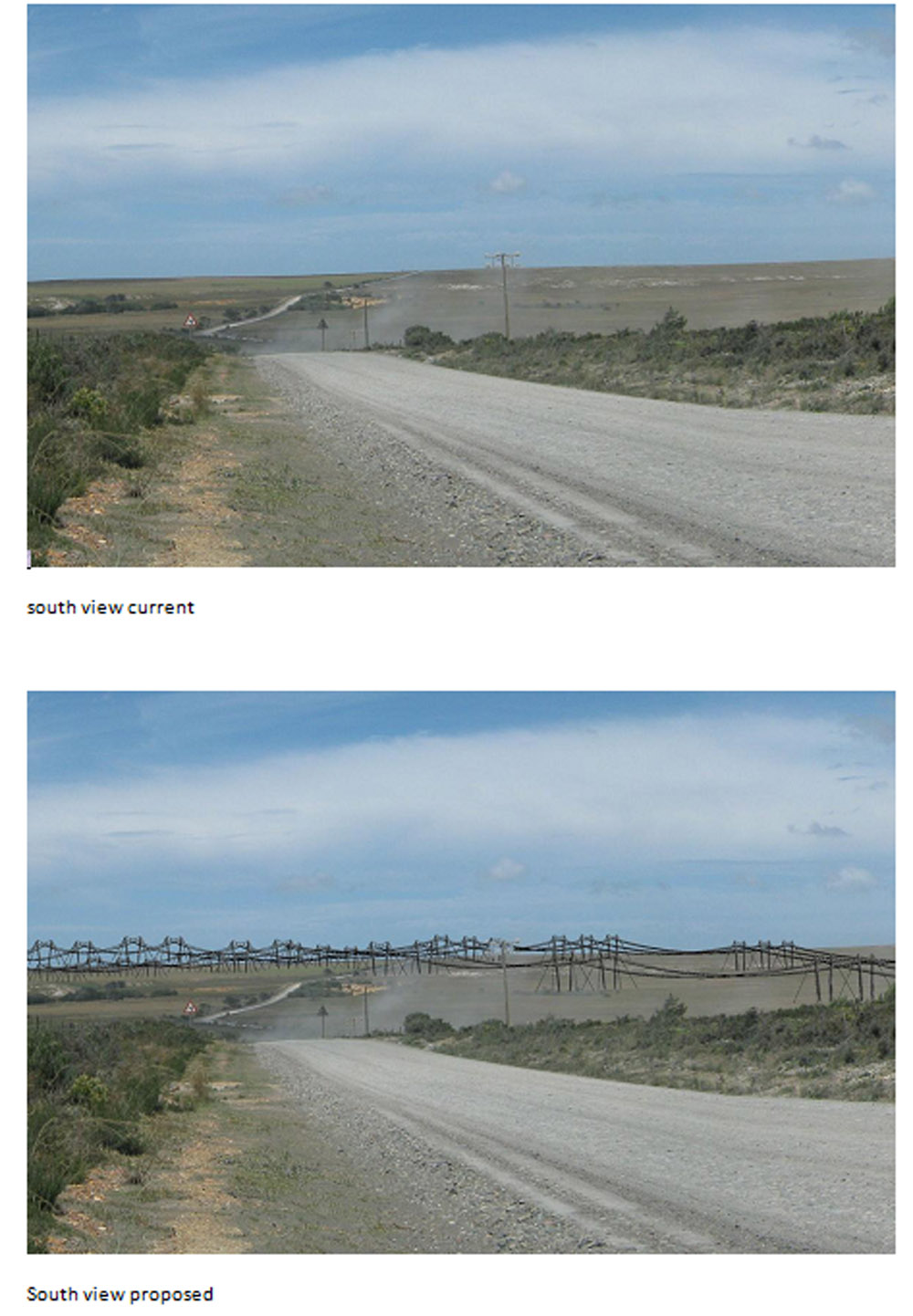 For most residents in the Greater St Francis & Oyster Bay area the most important of these is the Visual Impact Assessment. This can be found in Appendix 8, in the third volume. The photos shown here are taken from pages 81 & 83 of Appendix 8. These depict the current and proposed views along the Oyster Bay-Humansdorp road, looking north and south. This is just one of the massive negative environmental impacts which will occur should the Nuclear 1 project at Thyspunt go ahead.