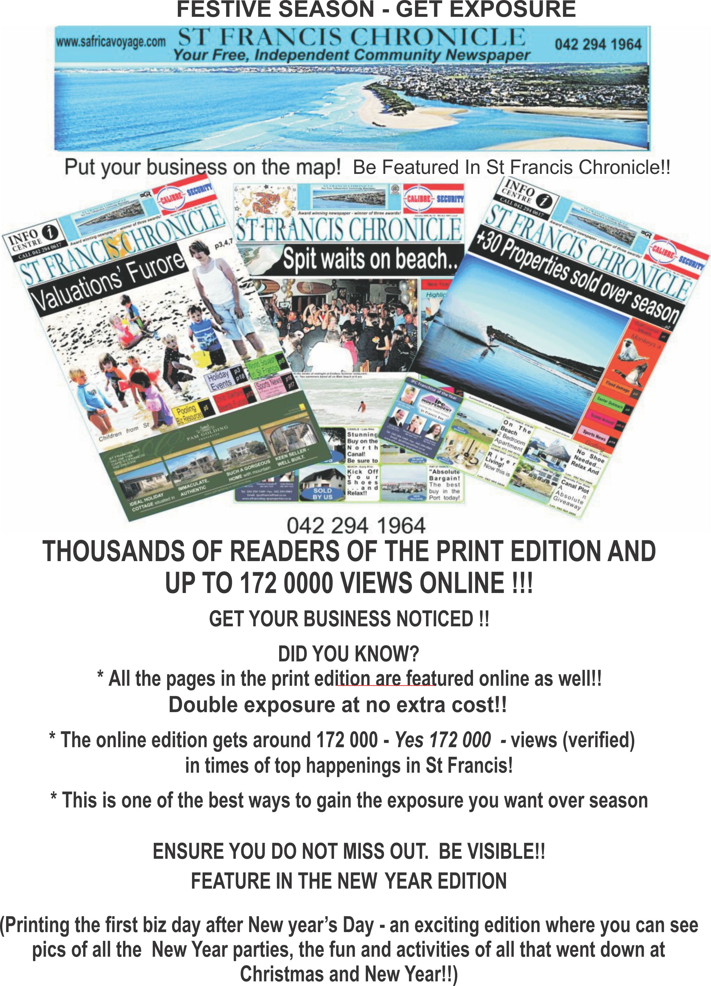 Festive season exposure in St Francis Chronicle St Francis Chronicle1 DecamSat, 22 Dec 2012 06:52:49 +02002012-12-22T06:52:49+02:0006, 20171 DecamSat, 22 Dec 2012 07:05:39 +02002012-12-22T07:05:39+02:0007, 2017Uncategorized Post navigation PreviousNext Share this:Share Share on Facebook (Opens in new window) Facebook Share on X (Opens in new window) X Like Loading... Related