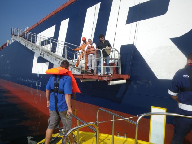 At 7.45 volunteers from NSRI Table Bay launched the Spirit of Vodacom to evacuate a 49 year-old French sailor from the oil tanker Maria which rescued him after his yacht sank off Luderitz.