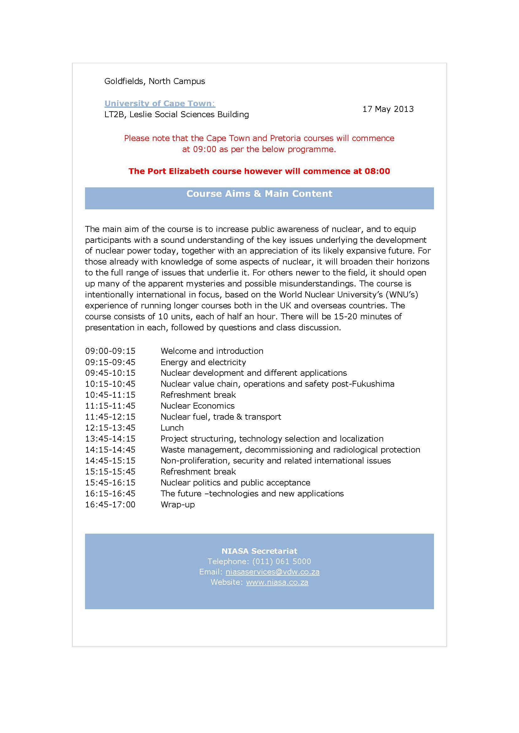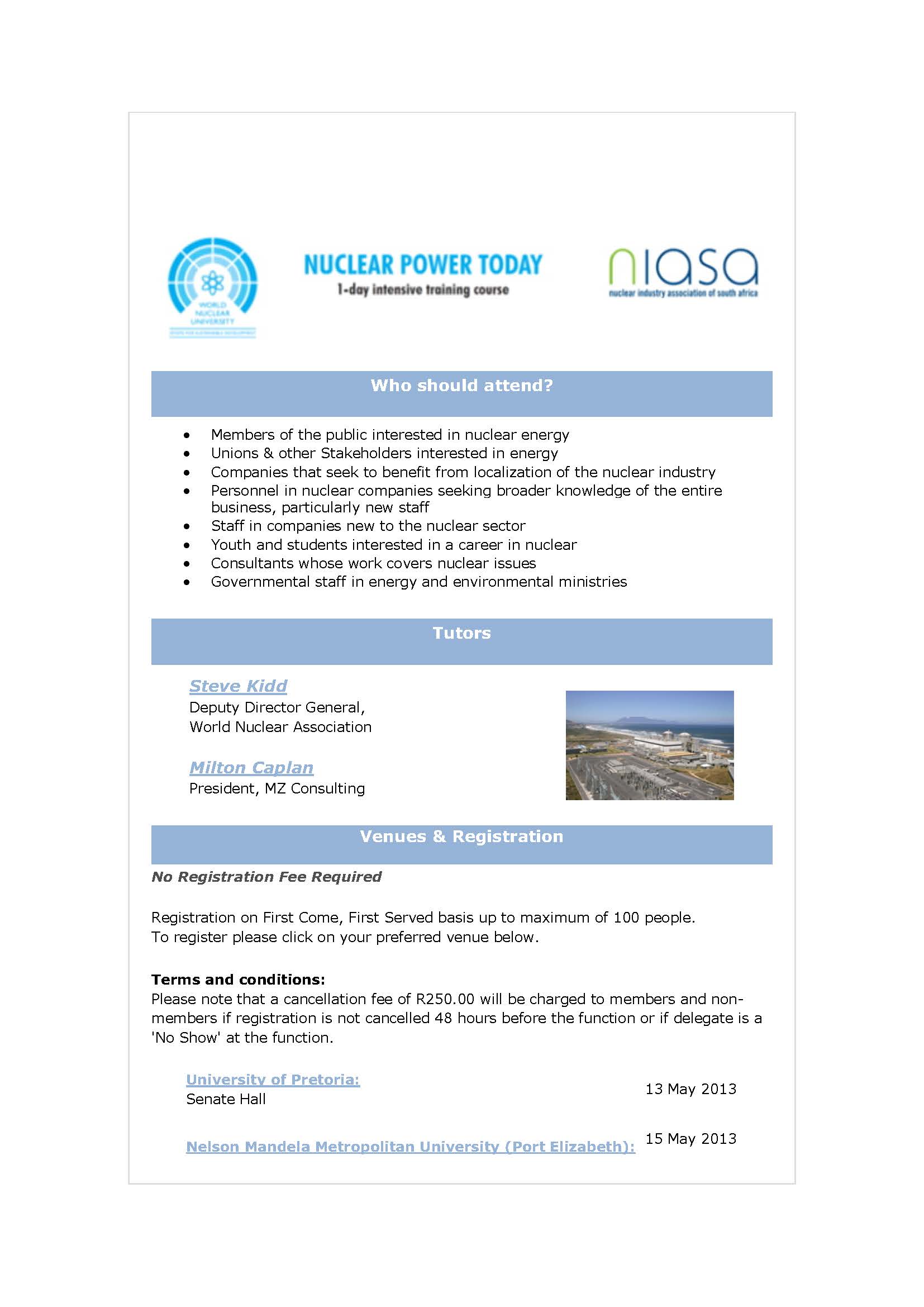 Note: The training course is not to enable one to gain employment but to give one an introduction and broad overview, plus understanding of the nuclear industry.