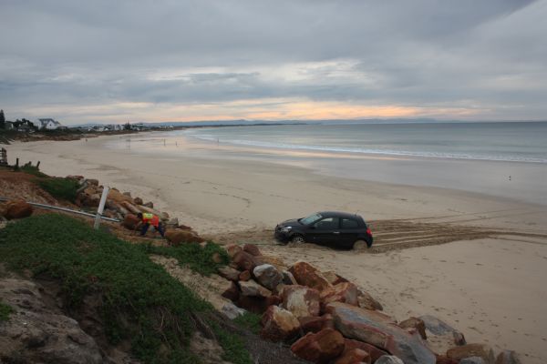 His tow team pulled the car along the beach to near the life saving building where there is an access path to the beach over the dune, so the car could be pulled up there. Coenraad said the car was a Renault Clio with an EC registration number.