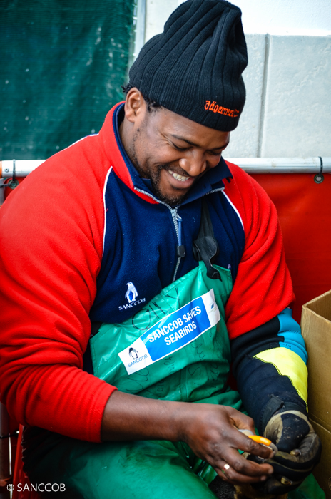 The photos show some gannets, Xolani Lawo (Senior Bird Rehabilitator at Sanccob) smiling happily while attending to penguins and Albert Snyman (National Research Foundation intern at Sanccob).