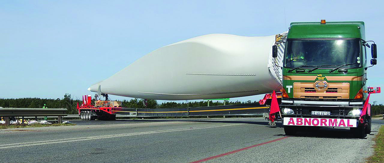 – 5 Feb (Wednesday) 1 set of blades (3) from Coega Port to Site (to arrive in Humansdorp around 11am). To be transported: 1 set of blades (3 trucks) from Coega Port to Site (to arrive in Humansdorp around 11 am. This will be one convoy, and on site by 12.30 pm. Large trucks and trailers.