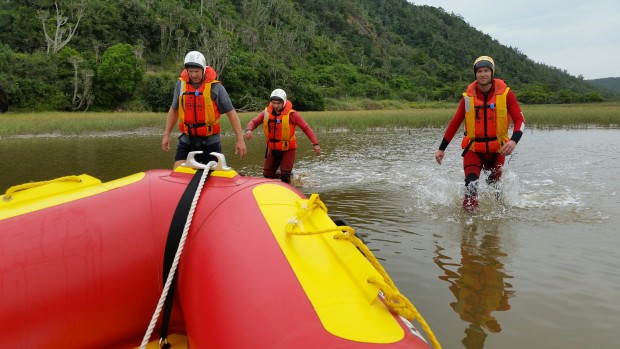 While returning to base, about 3km upstream on the Kowie River, the volunteers found a young man of 24 on the river bank calling for help. The man apparently suffered multiple injuries from being assaulted by a group of men the previous night. The victim had escaped by swimming across the river.