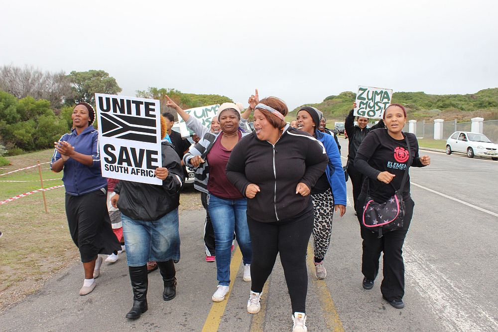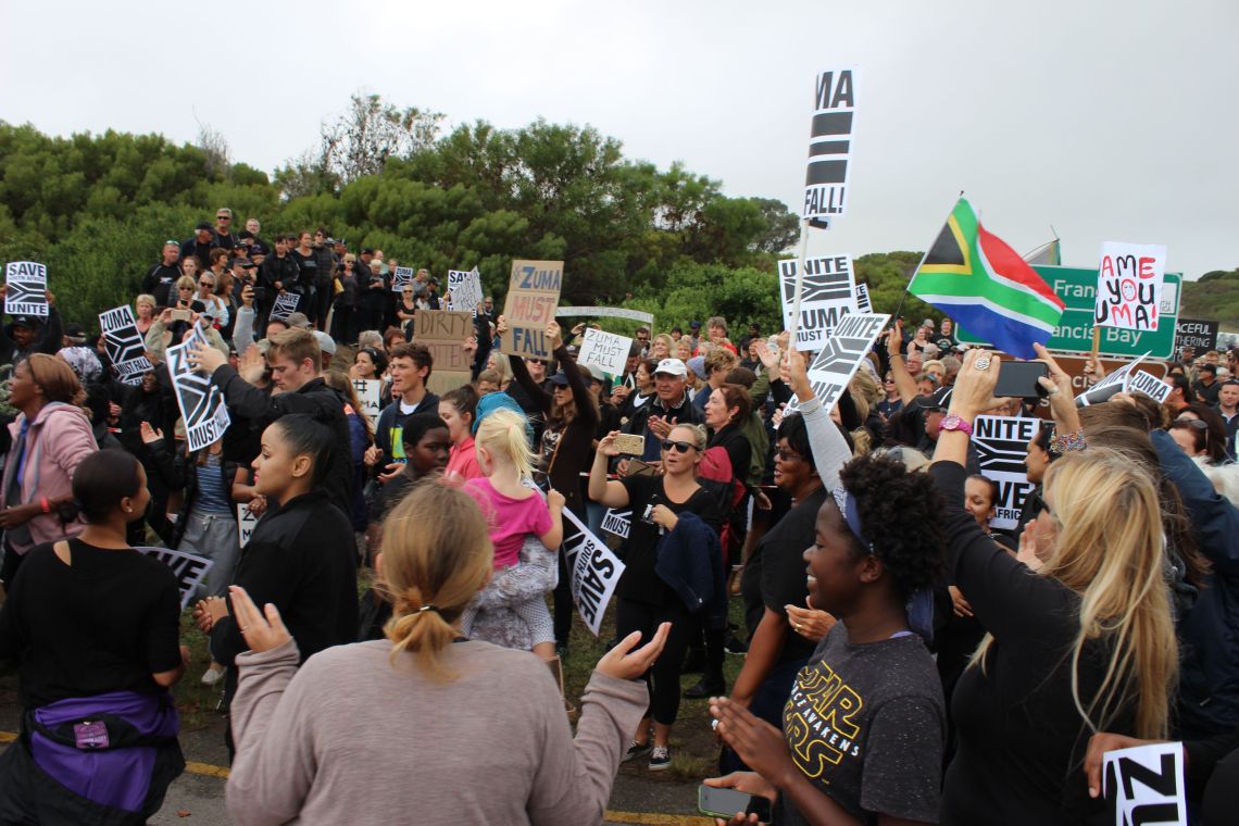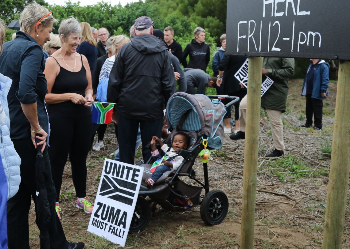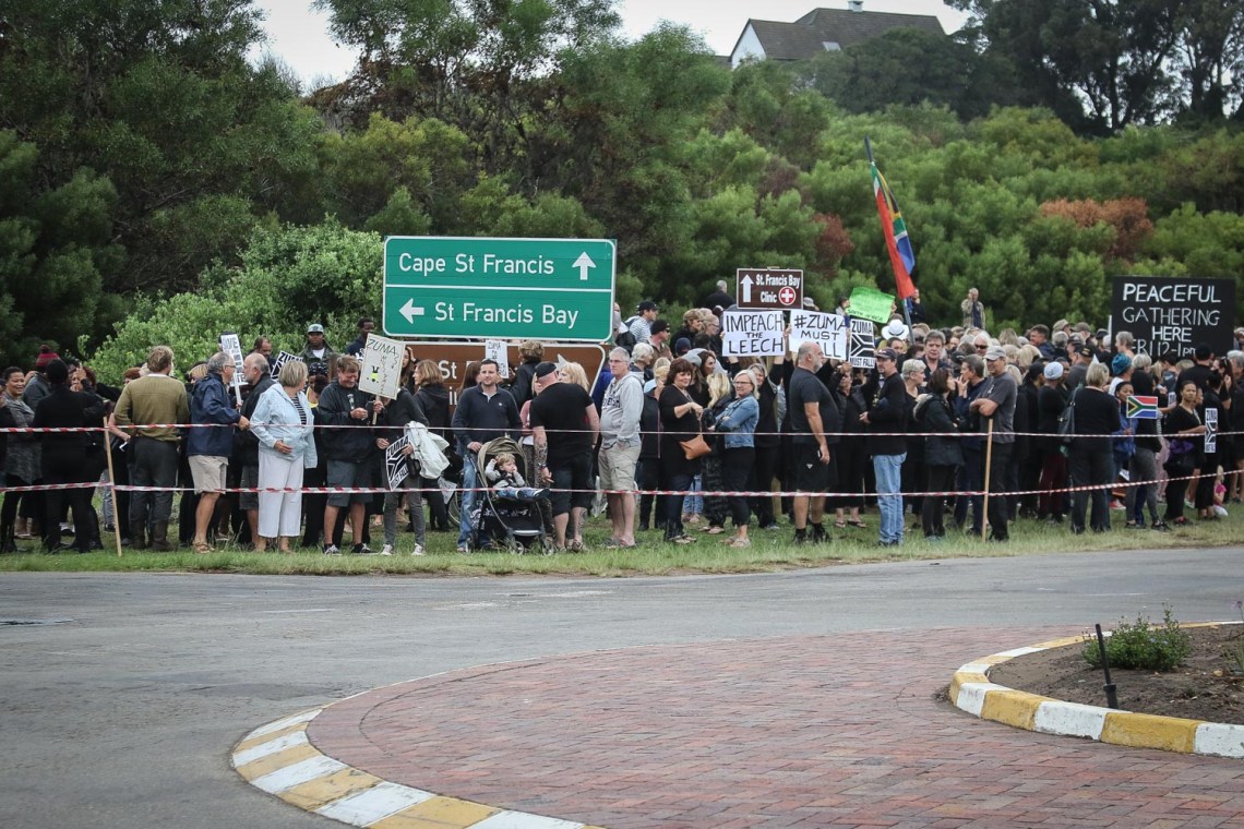 From 12 pm residents from St Francis Bay and Cape St Francis stood peacefully in a group at the traffic circle, smiling and waving ‘Zuma must Fall’ or ‘Save South Africa’ placards. Most of the town’s residents, who live in the Sea Vista township, decided not to join the gathering.
