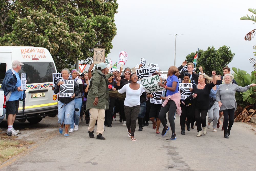About 150 -200 residents marched from the traffic circle at the entrance to the Eastern Cape town of St Francis Bay to the main street of St Francis Drive to show their support for the Save South Africa movement and the rallies throughout South Africa today.