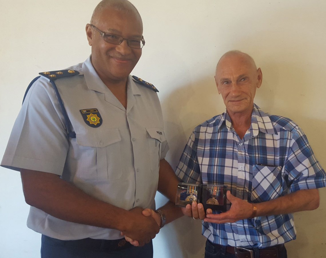 D/WO Oelofse served the community with pride for more than 43 years. During the ceremony, the Humansdorp Cluster Commander, Brig John Lebok, commended the Oelofse for his dedication and commitment towards his vocation and handed to the member his 30- and 40-year loyal service medals.