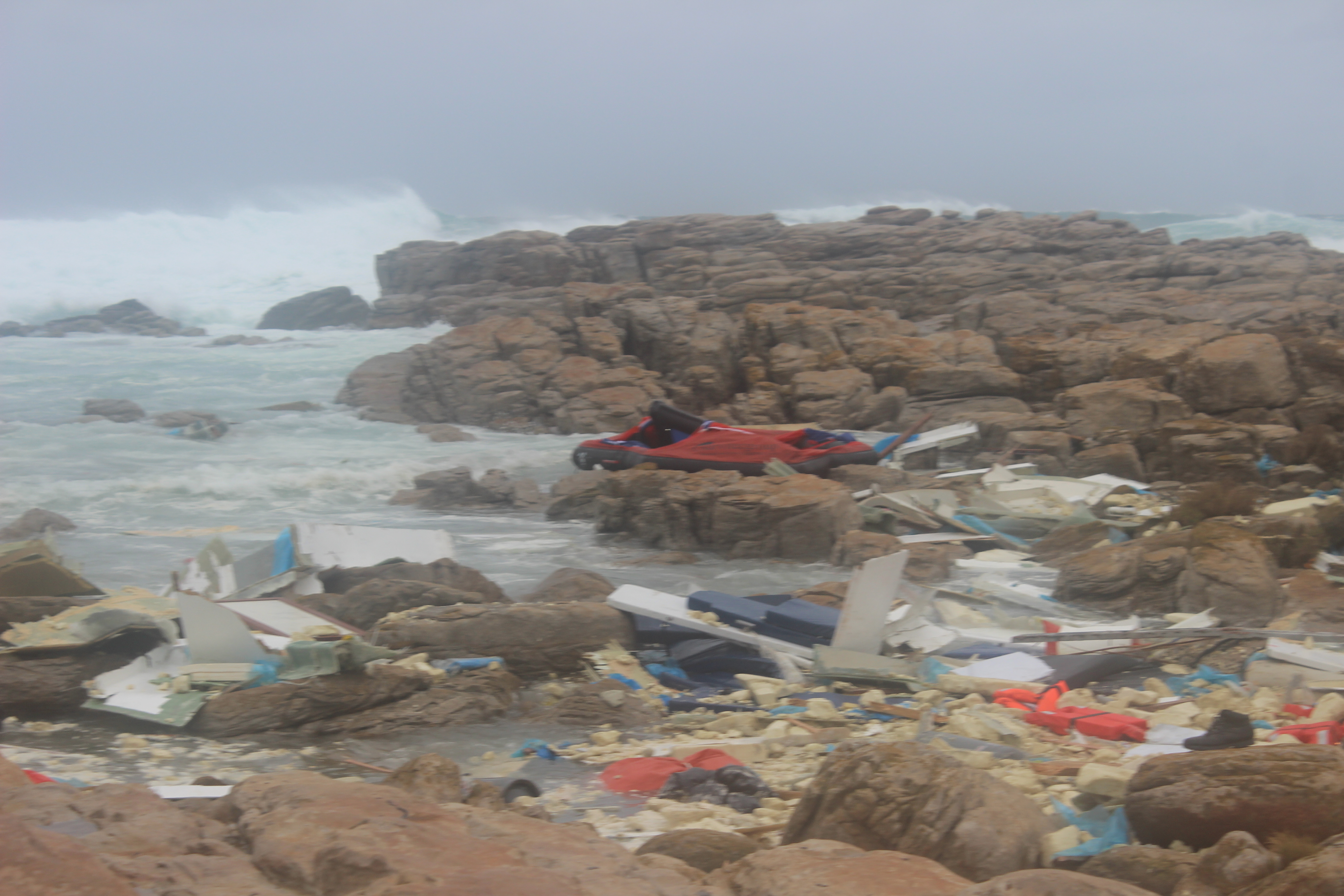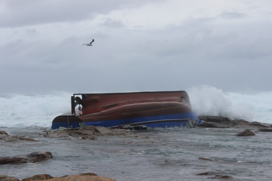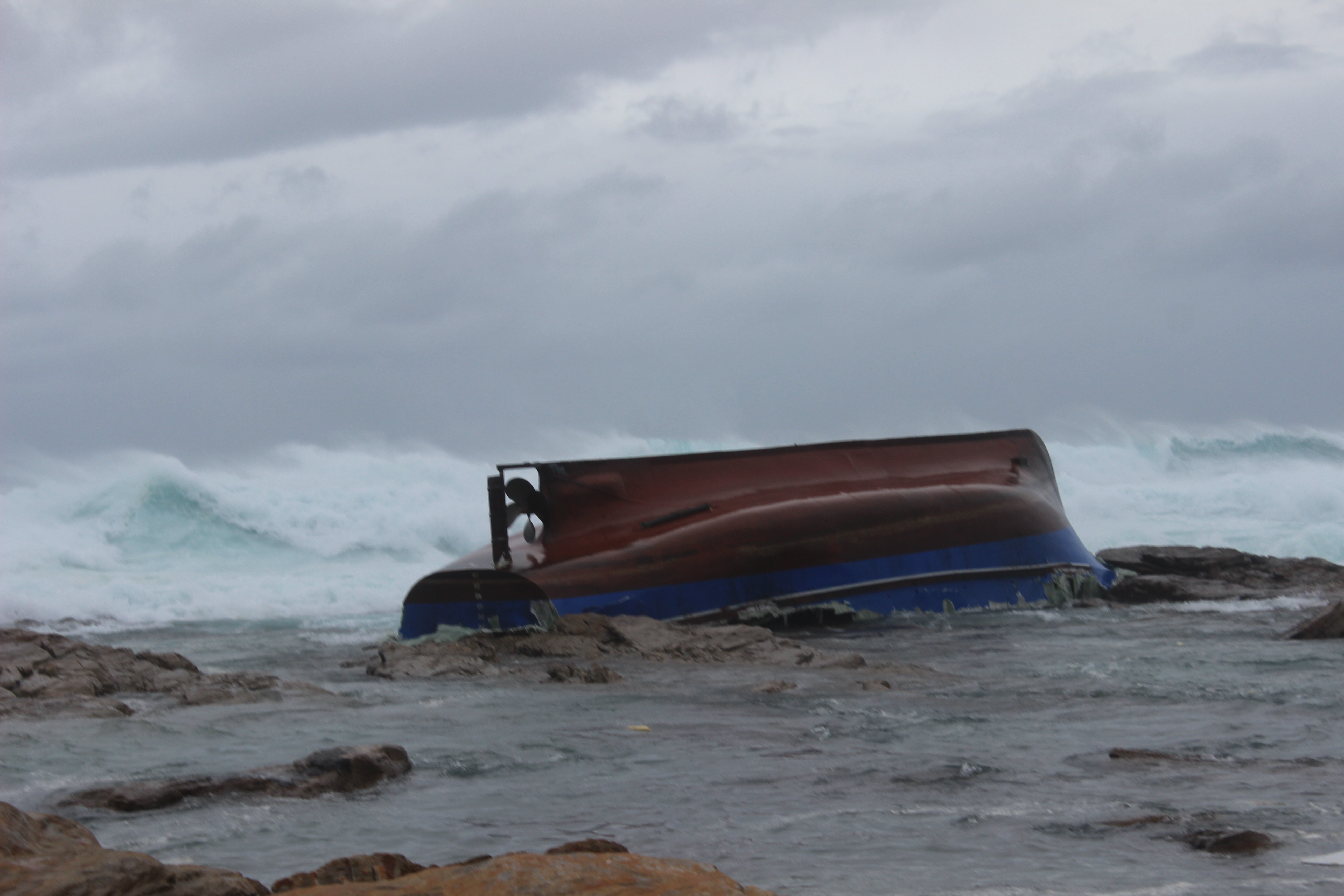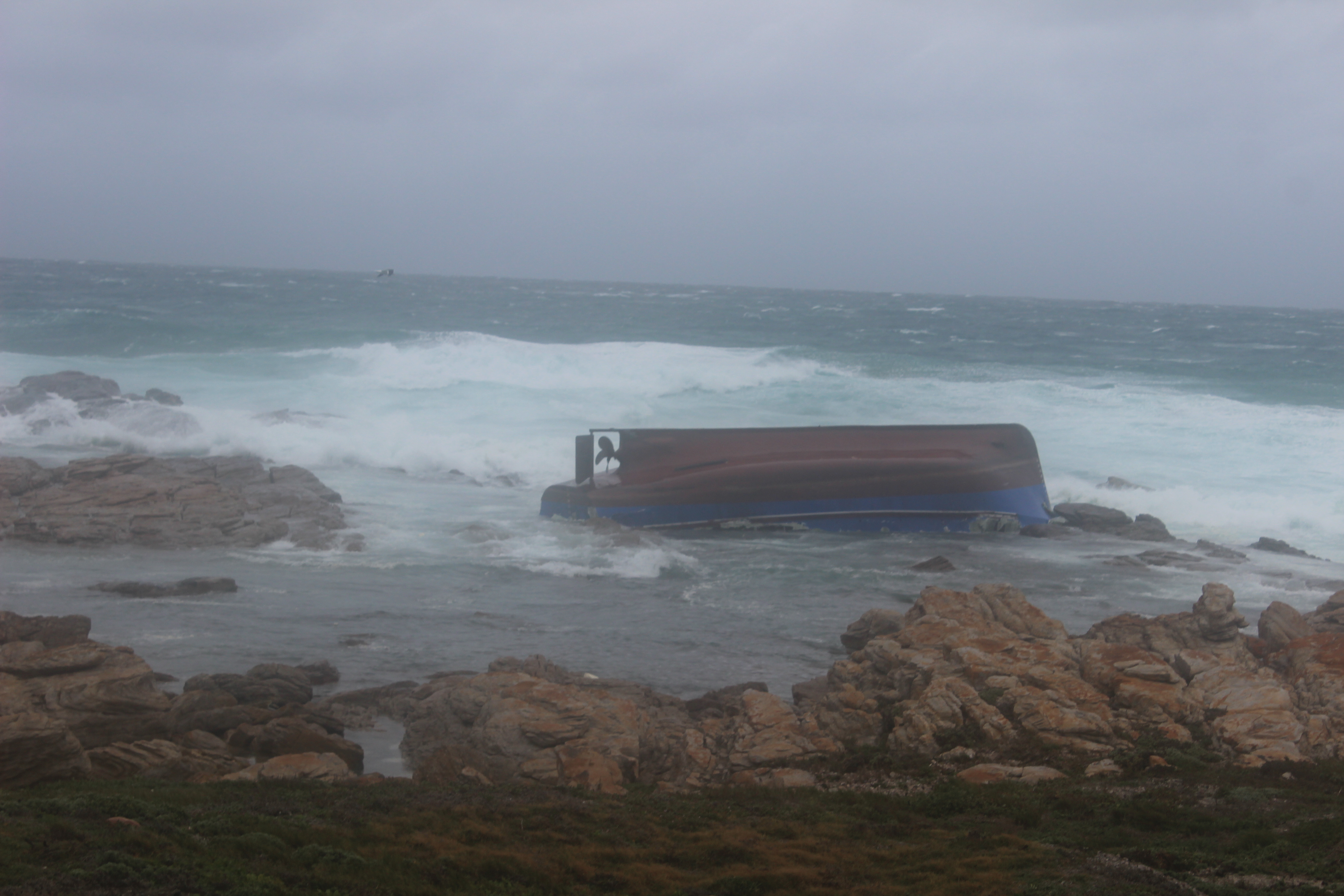 While the NSRI and ambulance services were on hand to at the scene , one man emerged from the upside wreck and managed to get ashore. He was reportedly incoherent and believed to be suffering from hypothermia and was rushed to hospital.