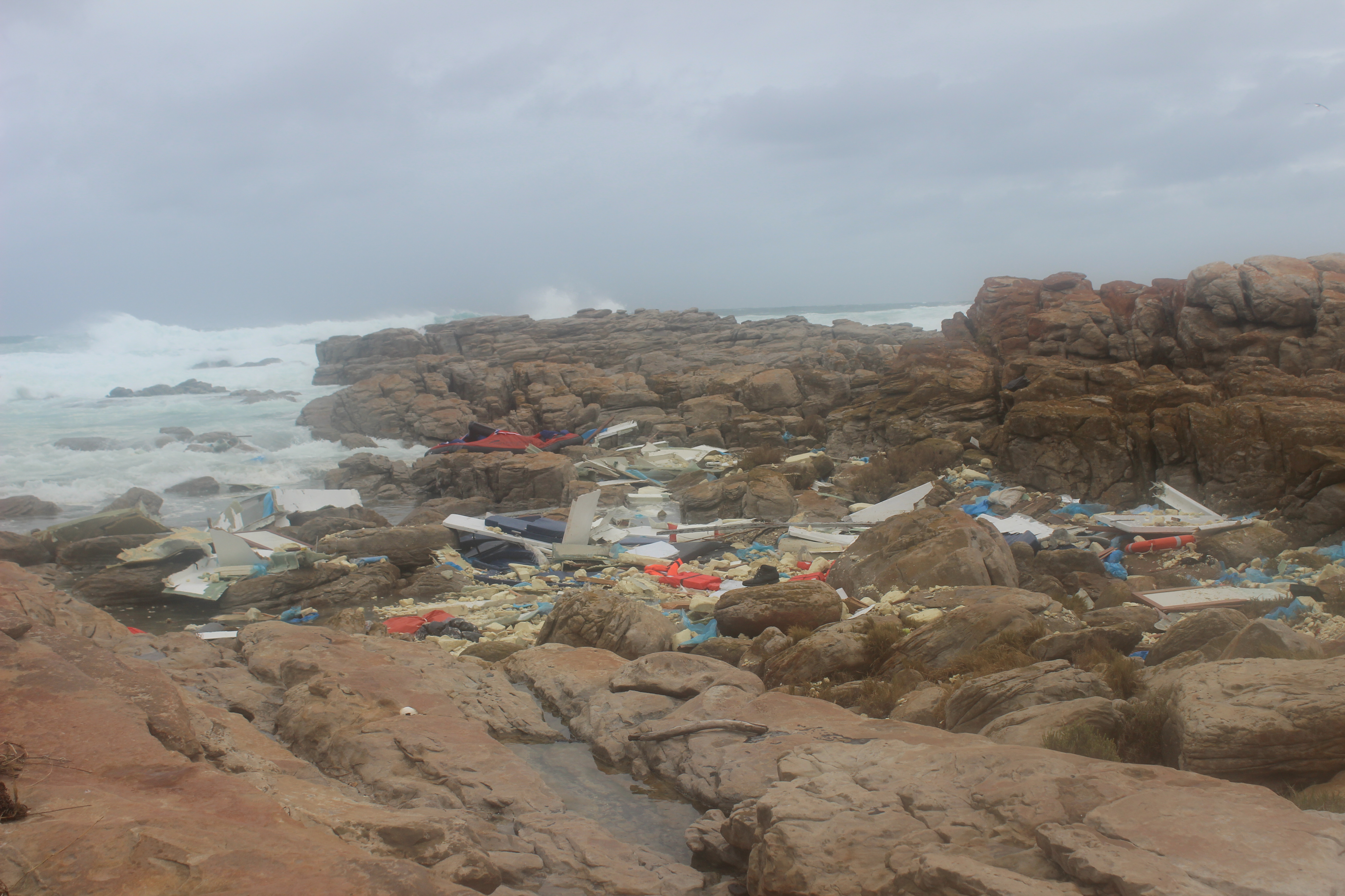 Eight people are missing from a chokka boat that ran aground and crashed on rocks in stormy seas and fierce winds at Cape St Francis’ Sunset Rocks early this morning