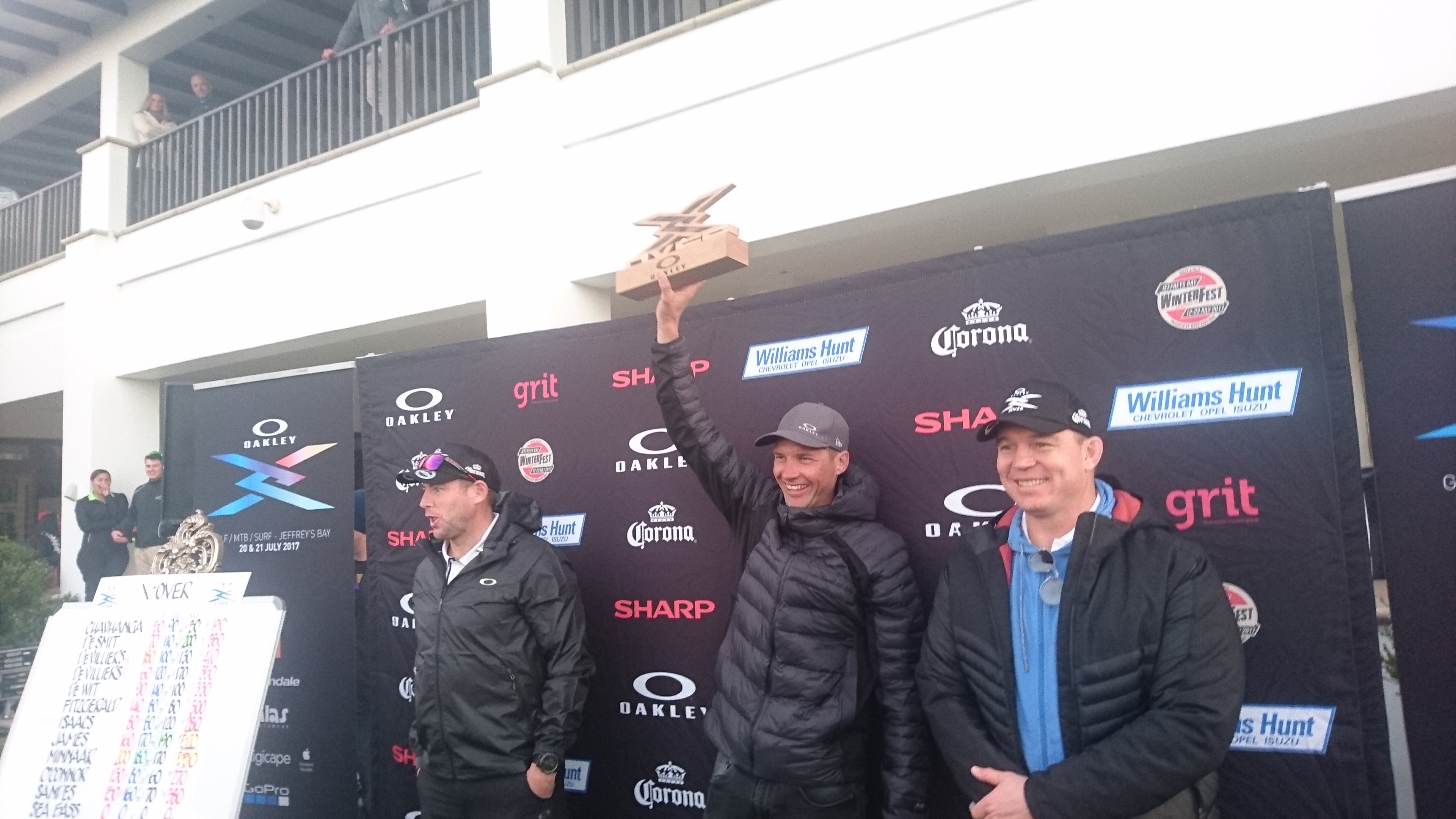 When the final tally was all added up, the eventual winner of the 2017 Oakley X-Over was Downhill Mountain Bike World Champ , Greg Minnaar (see photo). Butch James was runner up, with John Smit in third position (see photo), and the Australian Tom Whitaker in fourth.