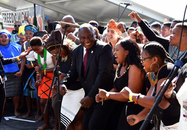 President Cyril Ramaphosa marks Freedom Day at the Mili Yili sports grounds in Makhanda on Saturday. GCIS