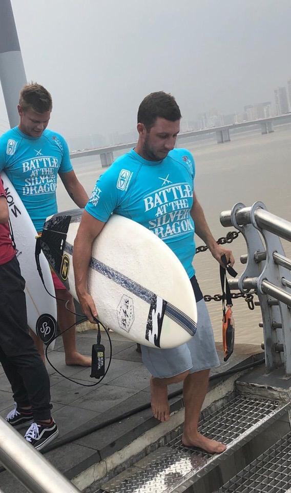 For the second year in a row St Francis bay surfers Dale Staples , aka Ducky, and Shaun (Billy) Payne are riding in the World’s first Tidal Bore surf competition called the Silver Dragon Shootout on the Quiantang River which runs through the city of Hangzhou.