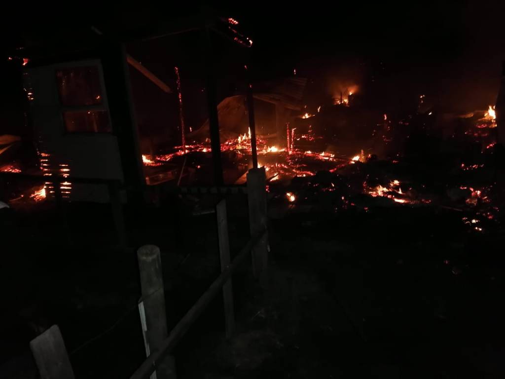 A big fire destroyed the homes of 11 families and 20 people lost all their possessions last night around 11 pm.The fire was said to have been started by a candle that developed into a blaze and then spread from one shack to another at a rapid rate.