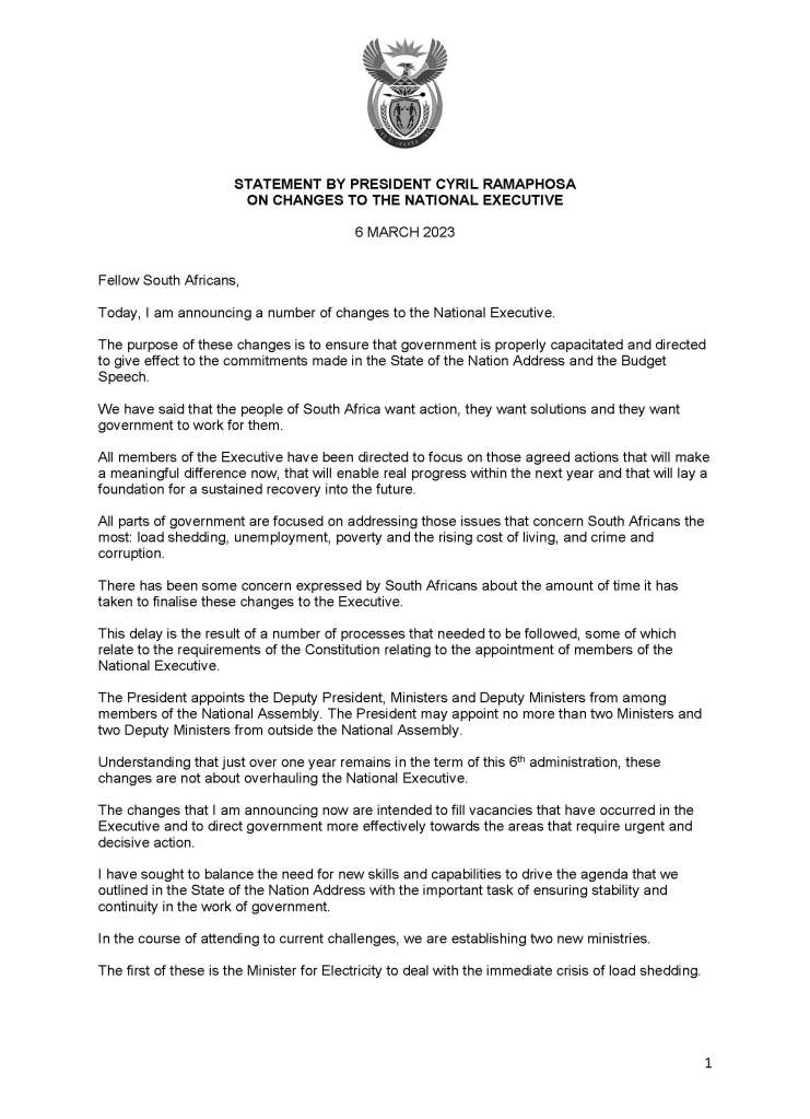 Statement By President Cyril Ramaphosa on Changes to the National Executive St Francis Chronicle1 MarpmMon, 06 Mar 2023 22:43:34 +02002023-03-06T22:43:34+02:0010, 2017Uncategorized Post navigation PreviousNext Share this:Share Share on Facebook (Opens in new window) Facebook Share on X (Opens in new window) X Like Loading... Related