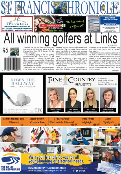 Plus there are highlights of Social & Sport news & photos , including of WoW, Andrew Young in St Francis, The prestigious SDC golf event at the Links, a regatta on the Kromme, Amica de Jager at SA champs, Woodridge’s 50 years Life-saving and not least… kids sports stars in cricket and chess!