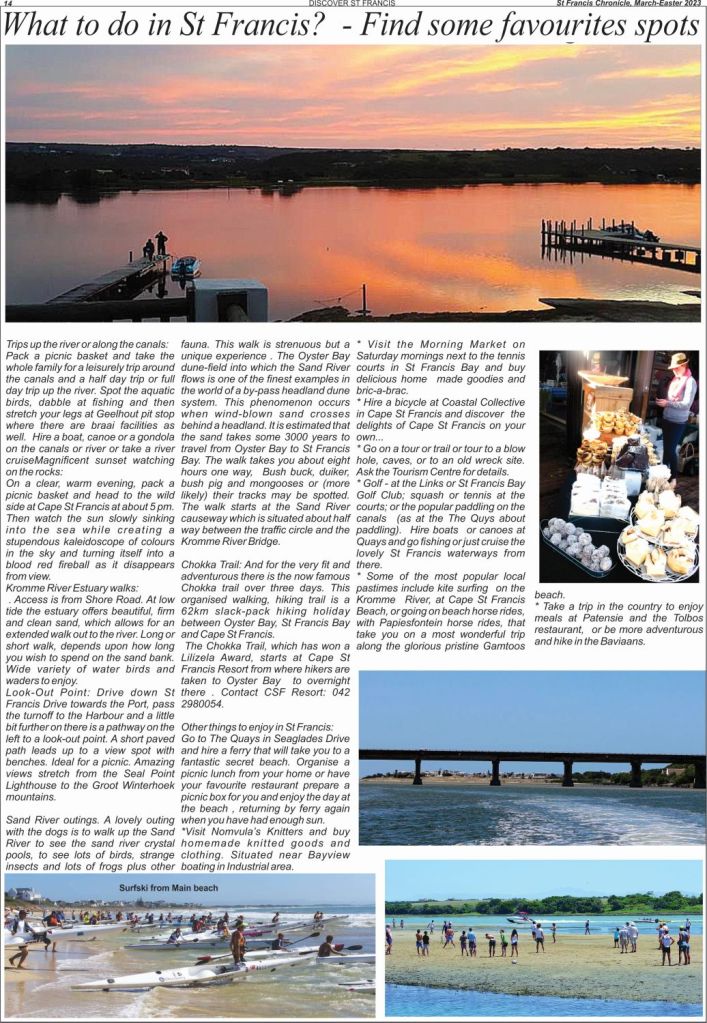 The actual Pull-out can be found in the current March-Easter edition in St Francis Chronicle newspaper, now out in St Francis, Kouga, and some niche PE shops.