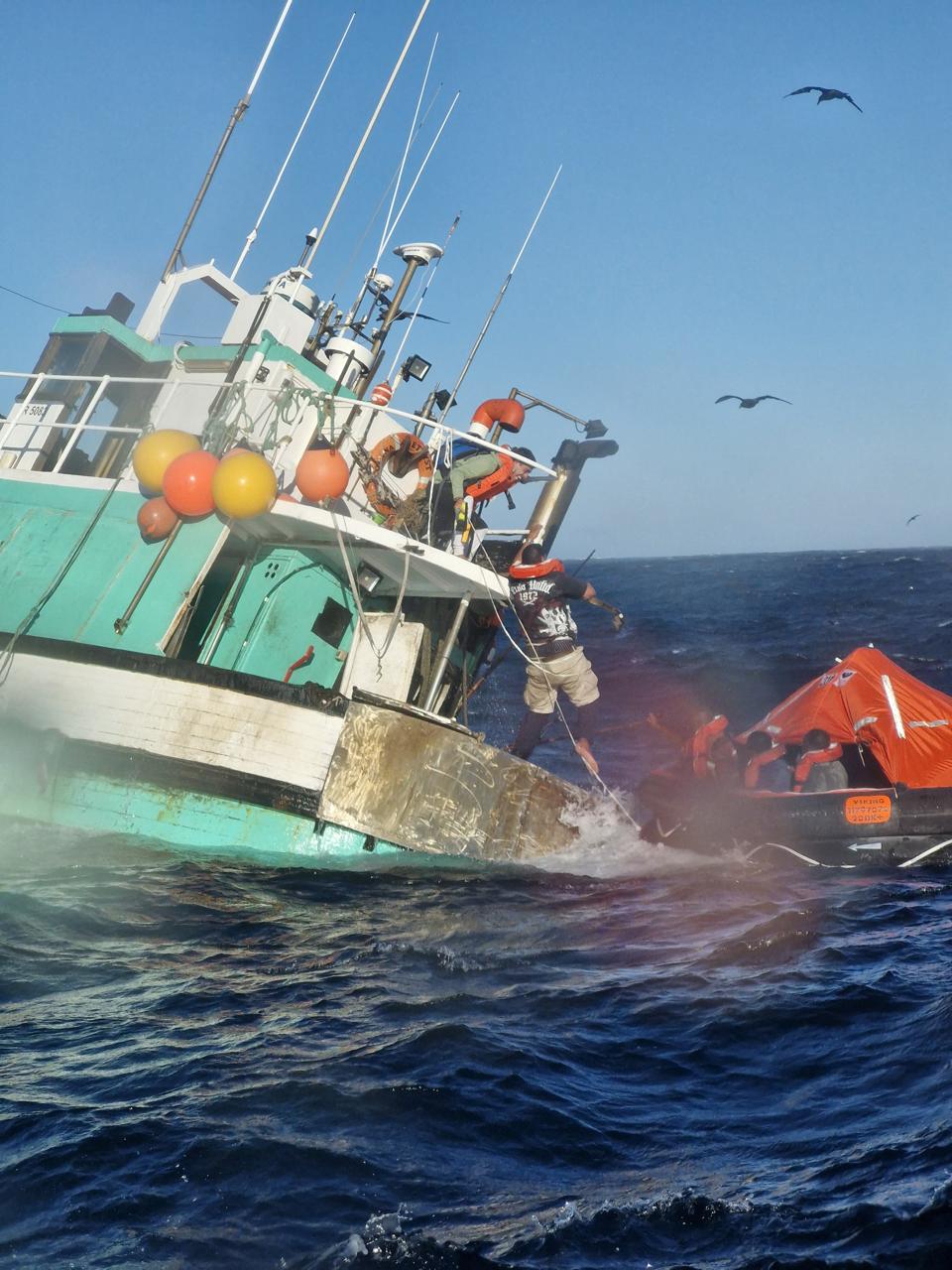 The 35 meter-long line fishing trawler sunk soon after the rescue.