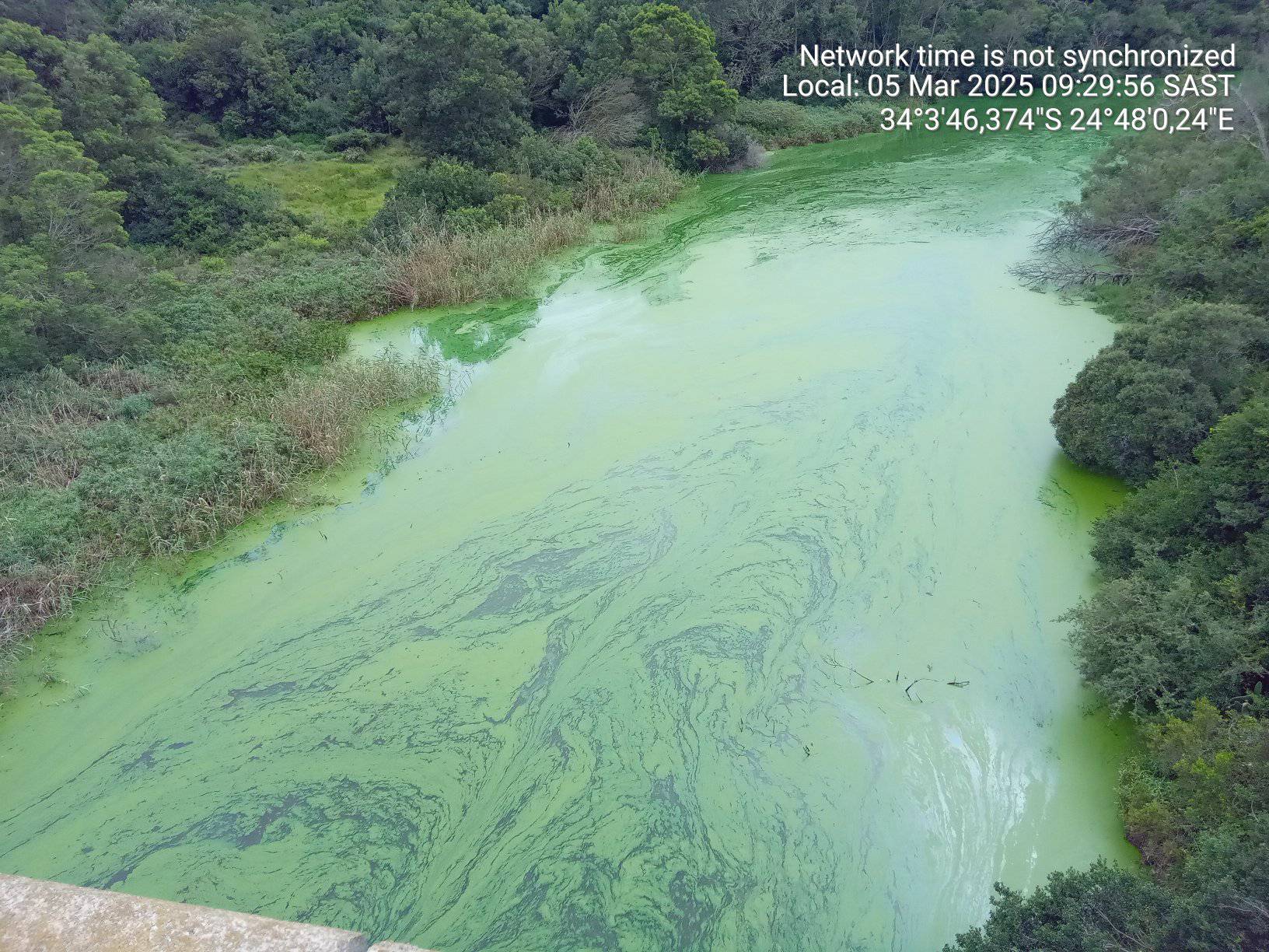 Alarm bells again surfaced this month when photos taken on 3 March 2025 show the dreadful state of the river which looks like a ‘dead river’ flowing from just outside Humansdorp near that town’s WWTW. It flows to the Seekoei estuary at Aston Bay and to the sea.