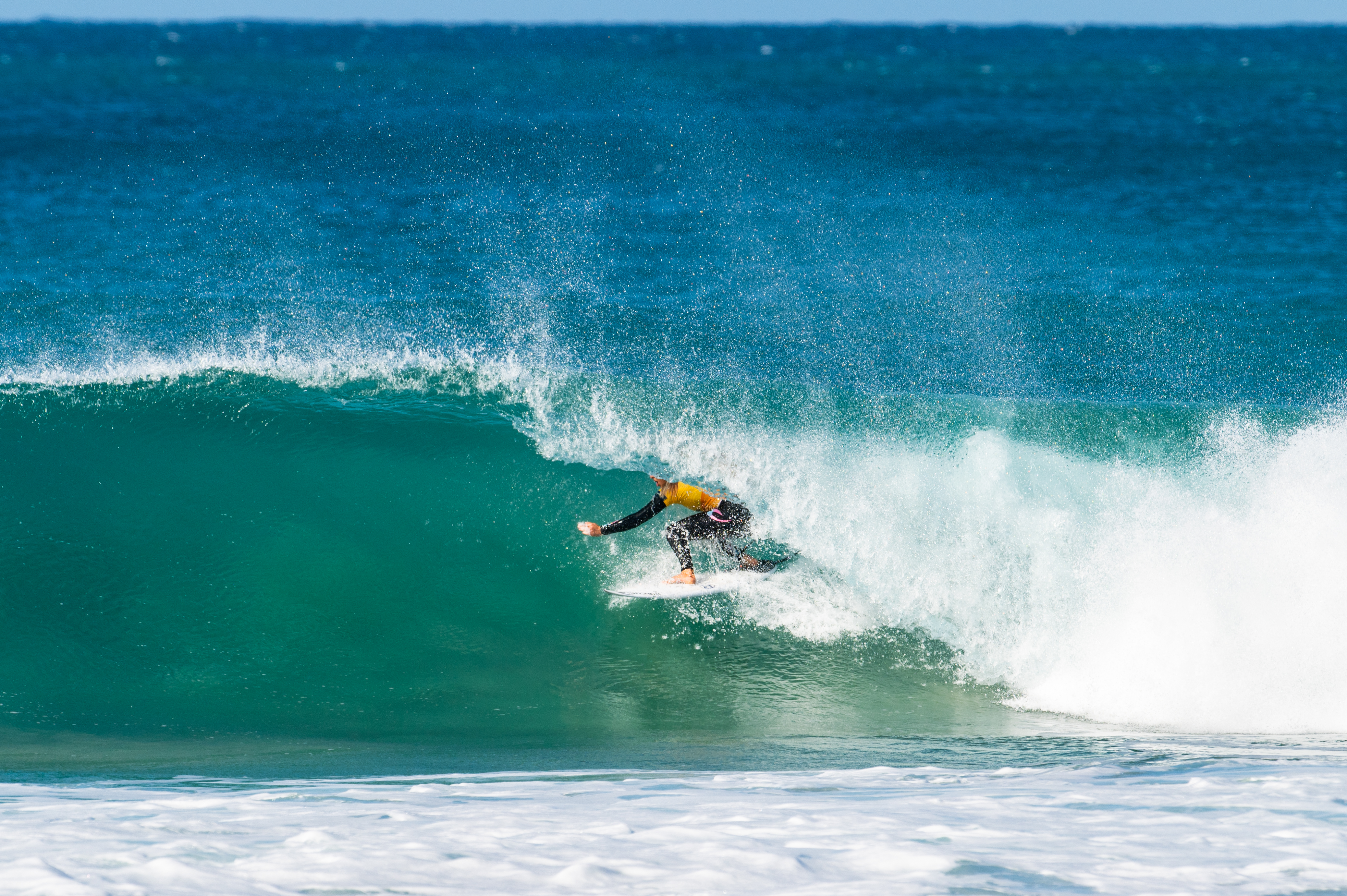 Picklum got off to a great start in Jeffreys Bay, finding the flow at Supertubes to weave together a creative combination of powerful turns and smooth transitions. Picklum, finding extra motivation in the Yellow Leader Jersey, cranked out an excellent 9.33 (out of a possible 10), matching the power and tempo of the wave with three solid turns and taking the win with a total of 16.83 (out of a possible 20).
